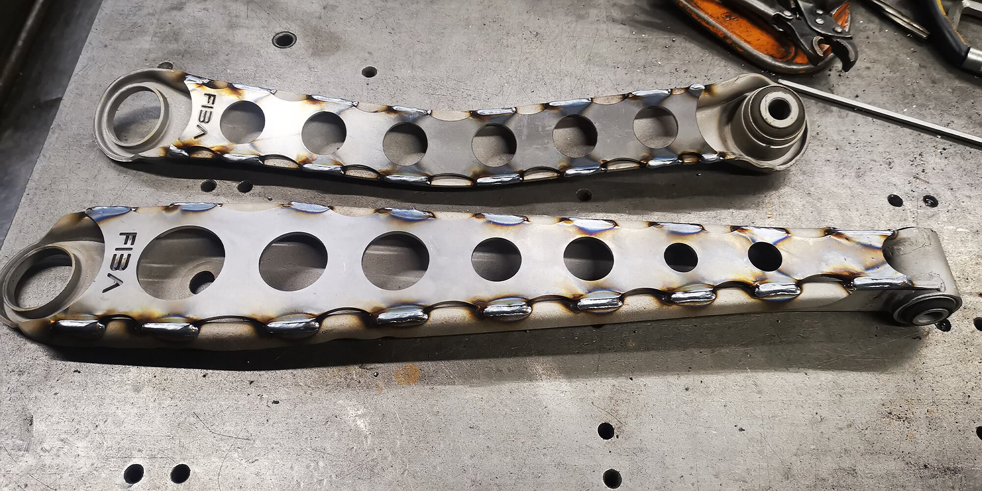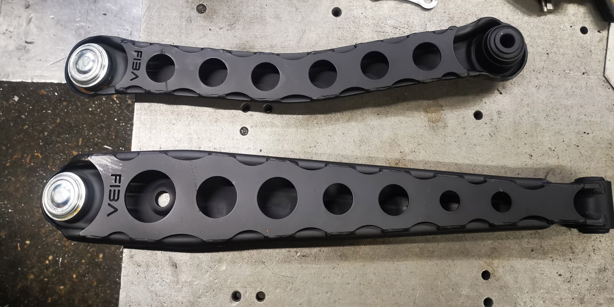 These strengthening plates are designed for the (AWD) Rear Lower and Upper Control Arms (LCA & UCA). They seamlessly weld into place, featuring weight-saving holes and integrated drain passages (and look pretty fancy if I do say so myself!).